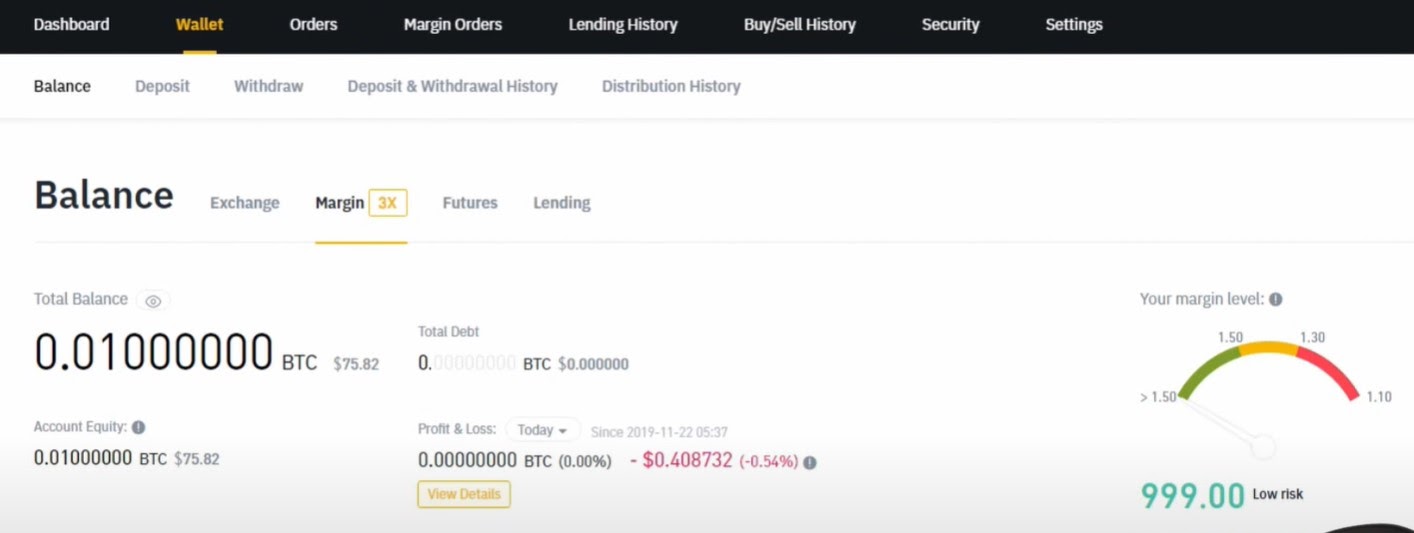 We’ll show you how to short-sell your BTC on Binance. This is how your account equity can look like. You can first borrow, then go about your technical analysis, etc.