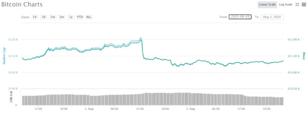 If the market is in a downtrend but does not match a downtrend’s characteristics, it is better to analyze short-term price indicators. Only a sharp drop in the price of an asset can bring the maximum profit, so the moment of opening and closing a transaction should be carefully selected.Here’s a chart that shows a sharp drop and following stability of BTC in August of 2020: