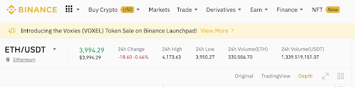 Trading depth chart increases your chances for profits. That’s why Binance exchange offers a convenient depth chart. You can access that chart by clicking on the Depth button shown below