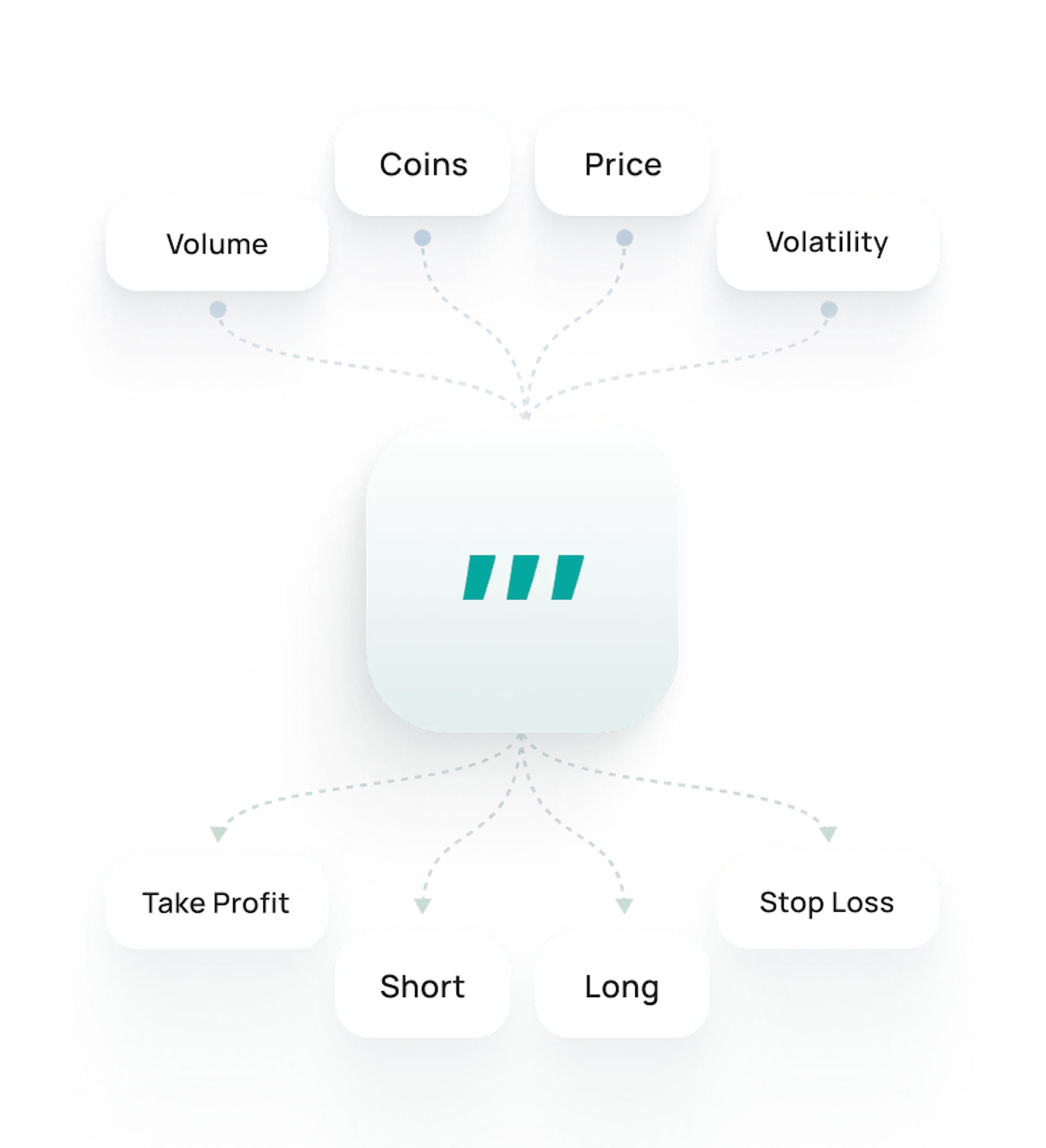 Selecione uma estratégia, conecte sua exchange e deixe nossos bots movidos por IA negociarem de forma mais inteligente — automaticamente, 24/7