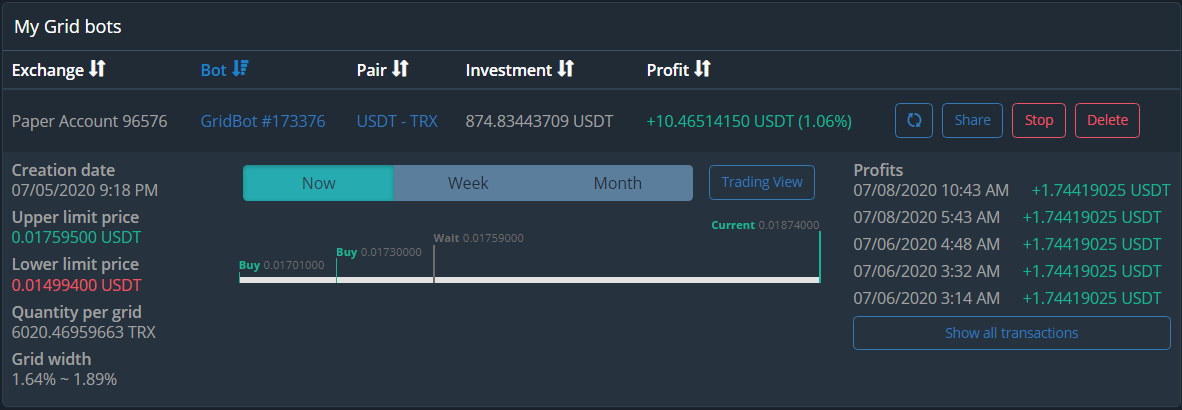 И спокойно наблюдать как бот приносит вам профит в автоматическом режиме: