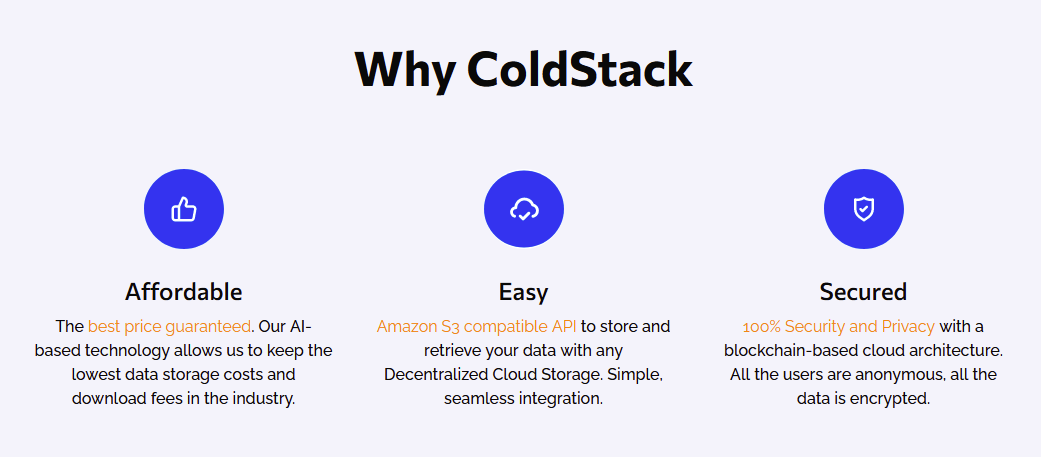 Coldstack является первым в мире децентрализованным агрегатором облачных хранилищ, созданным для обеспечения единой точки входа в облака Filecoin, Sia, Arweave и Storj. Coldstack предоставляет единый интерфейс и оптимизирует цены на основе ИИ, объединяя несколько децентрализованных облаков в одном децентрализованном приложении.