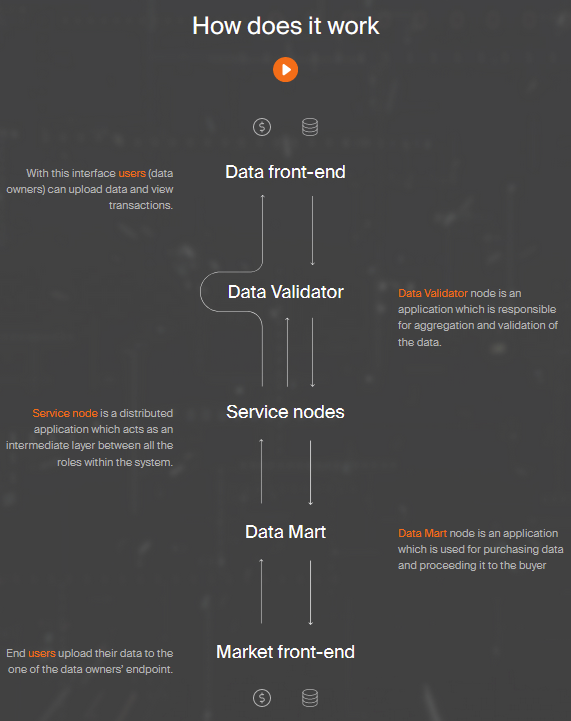 Платформа связывает между собой поставщиков и потребителей данных в любой сфере человеческой деятельности, будь то финансы, маркетинг или здравоохранение, позволяя избавиться от посредников, собирающих данные своих пользователей без их согласия.