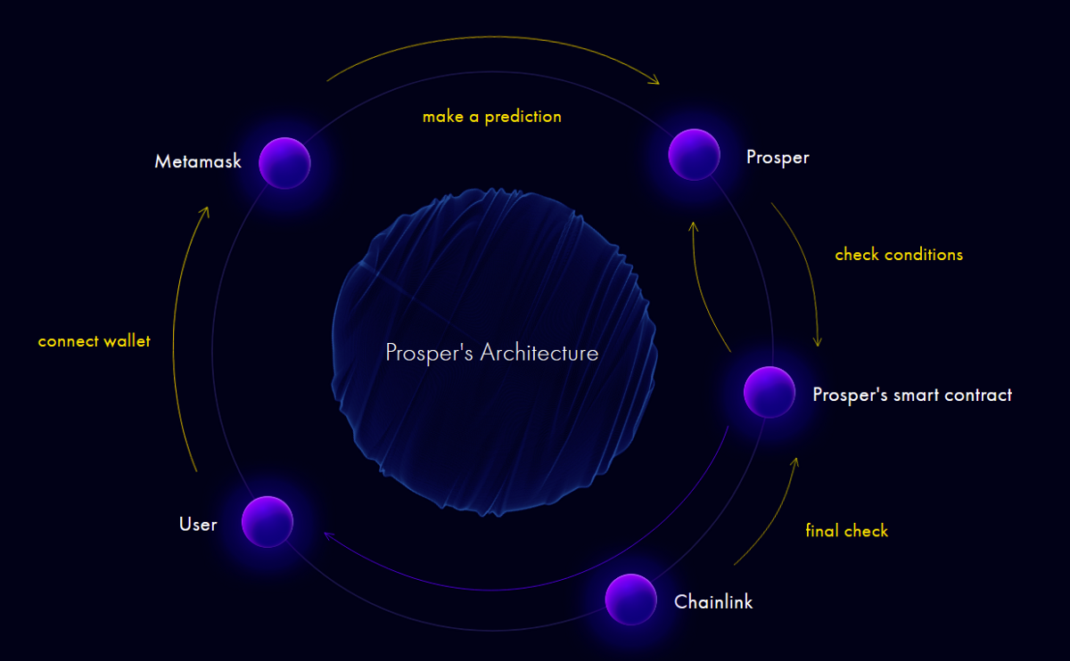 Рынки прогнозирования основываются на обработке огромного потока данных, которые могут служить основой для принятия решений. Подробнее о рынках предсказаний и других проектах в этой области вы можете найти в одной из наших предыдущих статей. В экосистеме Prometeus создана ориентированная на управление данными платформа Prosper — некастодиальный межсетевой рынок для краткосрочного прогнозирования и хеджирования на основе Binance Smart Chain.