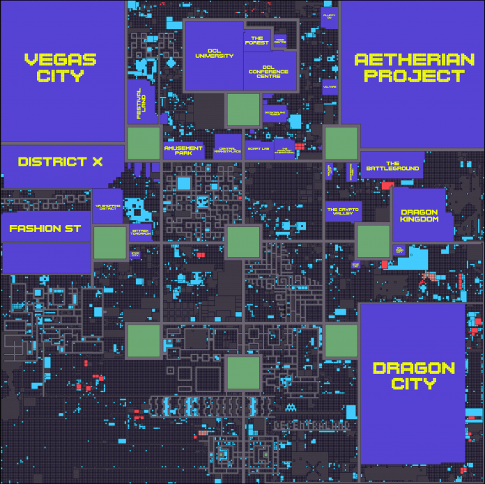 Decentraland позиционирует себя как платформу виртуальной реальности на основе Ethereum, позволяющую создавать и монетизировать контент и приложения. Decentraland представляет собой игровой мир под названием “Metaverse”, разделенный на участки — LAND со своими координатами, которые являются NFT-токенами стандарта ERC-721. Данные участки приобретаются за внутриигровой токен MANA, а некоторые из них объединены в районы с общей тематикой и интересами.