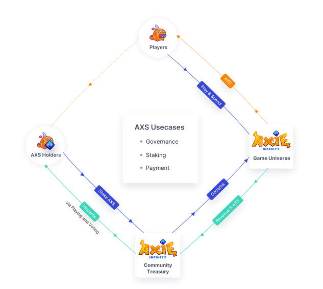 Вселенная Axie Infinity имеет собственный токен управления Axie Infinity Shards (AXS). Токены AXS можно зарабатывать в процессе игры или в качестве вознаграждения за создаваемый и публикуемый контент. За счет распределения токенов AXS разработчики Axie Infinity планируют перейти к децентрализованному способу организации экосистемы. На сегодняшний день количество активных игроков во Вселенной Axie достигает 1 миллиона.