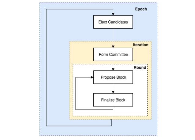 IoTeX решает все эти проблемы с помощью своего алгоритма Randomized Delegated Proof of Stake (Roll-DPoS). Он объединяет DPoS с проверяемыми случайными функциями (VRF) и практической византийской отказоустойчивостью (PBFT). Путем включения всех трех элементов консенсус Roll-DPoS может обеспечить улучшенную масштабируемость и децентрализацию.