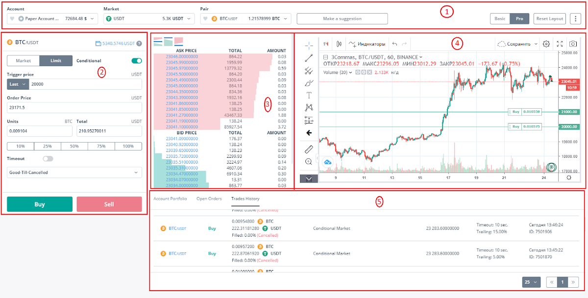 Рекомендуем потренироваться на нашем торговом терминале в режиме Paper Account перед торгами реальными средствами здесь или на бирже. Напомним, торговый терминал 3commas все еще в стадии разработки и скоро пополнится новыми функциями.