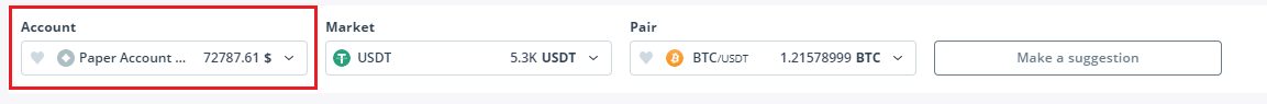 Пора перейти от теории к практике! Если вы только учитесь работать с торговым терминалом, настоятельно рекомендуем переключиться на Paper Account в верхнем меню терминала. Пополнить объем виртуальных средств вы можете в настройках своего аккаунта.