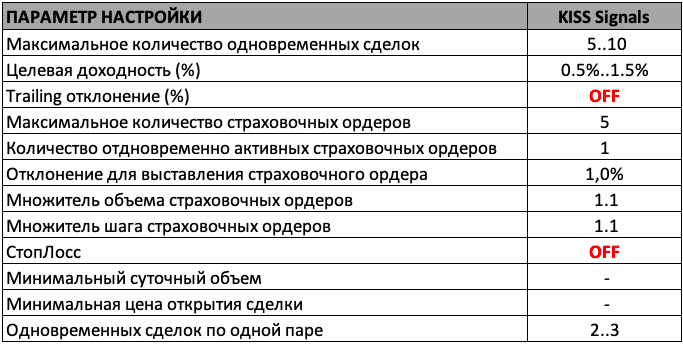Рекомендованные стратегии для сигналов KISS Signals