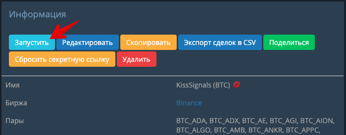 На этом настройка бота по сигналу KISS Signals закончена.