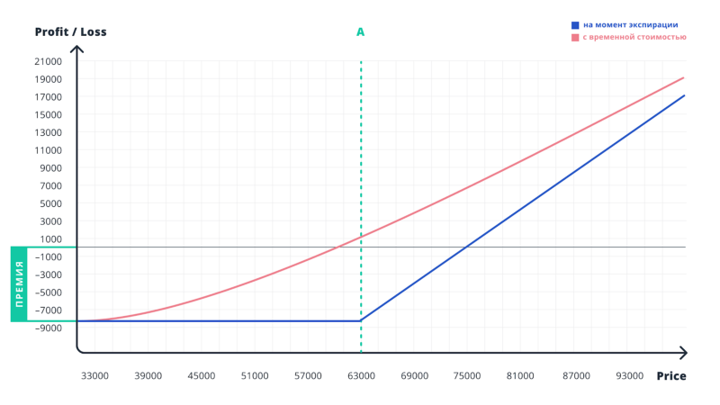 Если к сроку экспирации цена биткоина будет ниже $12,000, то мы понесём убыток, а если выше, то получим доход.