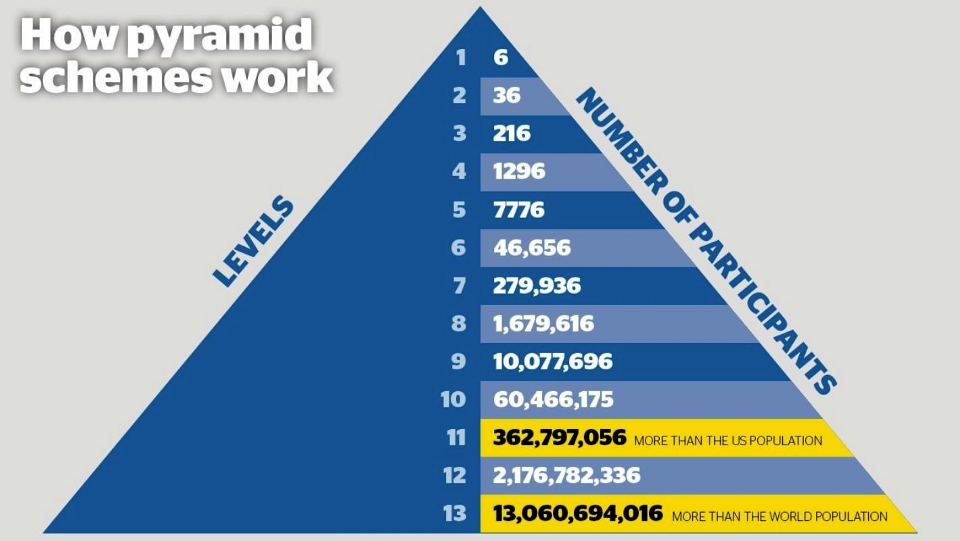 Любая финансовая пирамида основывается на принципе выплат процентов ранним вкладчикам за счет привлечения новых пользователей и инвестиций, что является отличительной особенностью финансовых пирамид от схемы Понци. Рано или поздно организаторы схемы не смогут выполнить обязательства перед вкладчиками, тем более, что с увеличением количества пользователей, необходимость привлечения новых средств возрастает. Чаще всего этот момент не наступает, поскольку организаторы схемы исчезают со средствами пользователей задолго до “схлопывания” пирамиды.