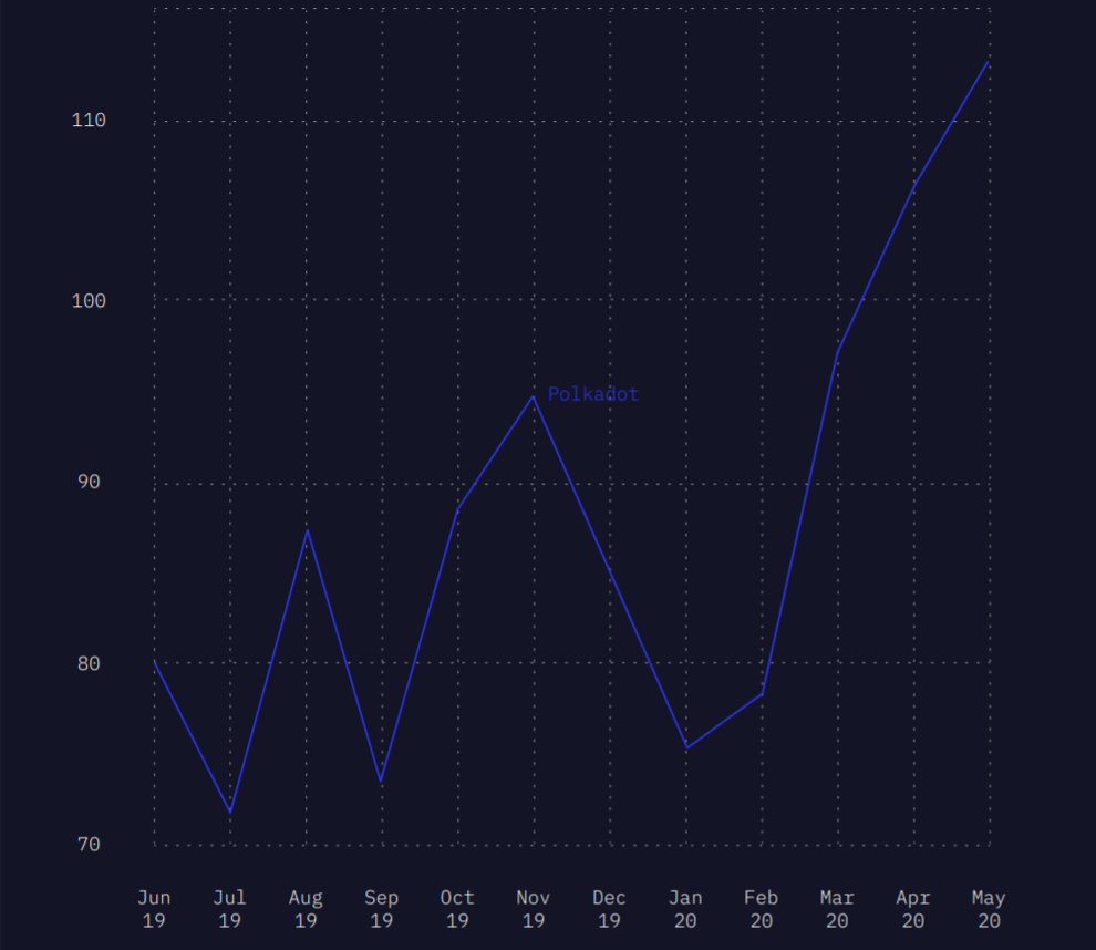 Тем не менее, новые игроки такие как Polkadot (+44%) и Cosmos (+15%) демонстрируют значительный рост активности разработчиков, хотя учитывая их недавние крупные запуски, рост может продолжаться уже не такими темпами. Theta (+931%) и Cardano (+580%) стали рекордсменами по росту количества еженедельных обновлений кода. Стремительный рост обновлений Theta, аналитики связывают с запуском второй основной сети в конце мая, недавним изменением цен и низкой активностью развития в середине 2019 года. Причиной роста числа обновлений Cardano, вероятно, является сочетание предстоящего релиза и недавнего ценового движения. В обоих случаях такой рост вряд ли продолжится.