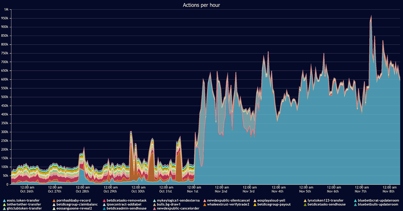 Так, например, проверив данные транзакций в период с 1 октября 2019 года по 30 апреля 2020 года, в EOS и Ripple большинство транзакций показали характеристики, напоминающие атаки DoS. В Eos 95% транзакций были инициированы эирдропом EIDOS.