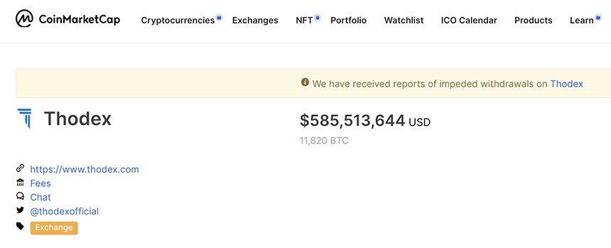 В понедельник 19 апреля пользователи криптовалютной биржи Thodex начали жаловаться на сбои в работе торговой площадки. Примерно еще сутки она проработала в нормальном режиме; последний раз сервис CoinMarketCap во вторник зафиксировал на Thodex 585 миллионов долларов суточного объема торгов. В тот же день платформа полностью прекратила функционировать, её пользователи до сих пор не могут вывести свои средства.