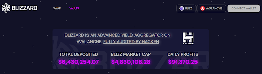 Платформа Blizzard, недавно собравшая средства и запущенная на лаунчпаде Lightning, основана на Avalanche и является агрегатором доходности. Пользователи могут обеспечить ликвидность и поместить токены в различного типа хранилища Blizzard, после чего агрегатор увеличивает их ценность за счет реинвестирования средств. На момент написания статьи сумма депозитных средств на площадке составляет свыше $6.5 миллионов.