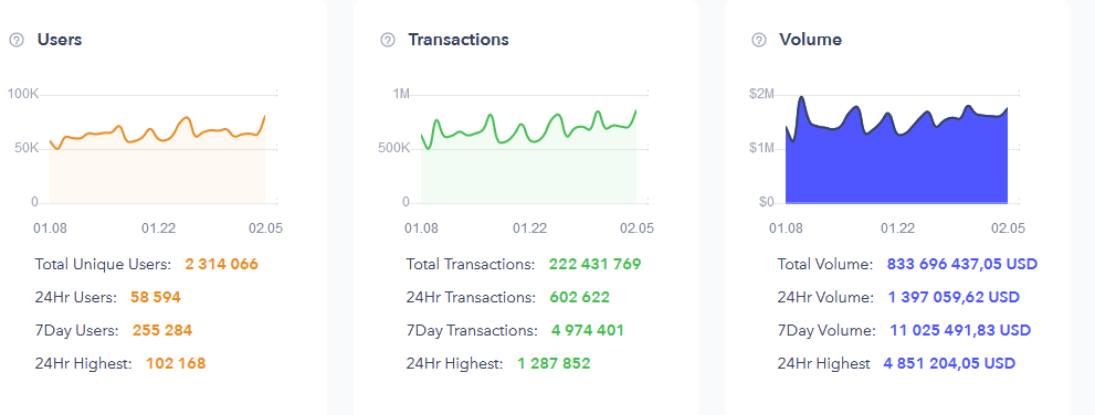 Согласно статистическим данным портала Dapp, количество пользователей, хотя бы раз взаимодействующих с мобильным приложением CHAI, составляет более 2.3 миллионов, а общий объем обработанных средств составляет почти $1 миллиард, в то время как суточный объем средств составляет около $1.5 миллионов.