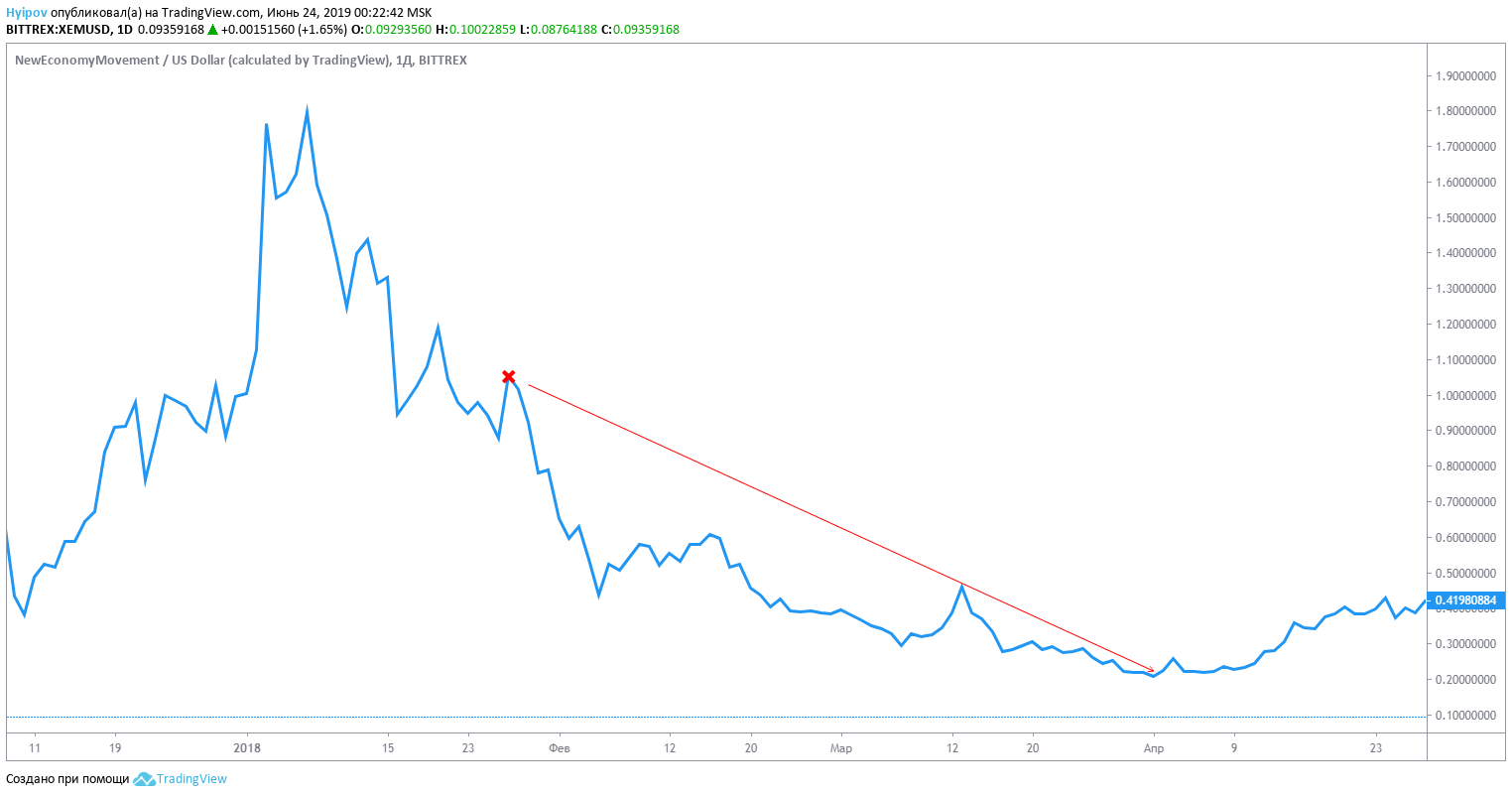 Если посмотреть на график выше, то мы увидим, как драматически данное событие отразилось на курсе NEM. Монета, и без того находившаяся под давлением медвежьего рынка, буквально рухнула после новостей, потеряв в весе больше чем в два раза и явно чувствовала себя хуже рынка. В итоге медвежьего ралли NEM упал с 1.79 до 0.20 USD за один коин и огромный вклад в этот крах внесло именно ограбление биржи Coincheck. Такое драматическое падение курса XEM поставило в трудное положение не только инвесторов данной монеты, но и сам NEM Foundation, который был в буквальном смысле поставлен на грань банкротства и до сих пор не может оправиться от финансовых трудностей.