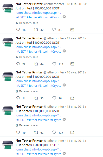 Станок USDT по отчетам наблюдателя @tetherprinter стал печать уже не 25-50, а по 100 млн. USD в день. Однако, получился обратный эффект.