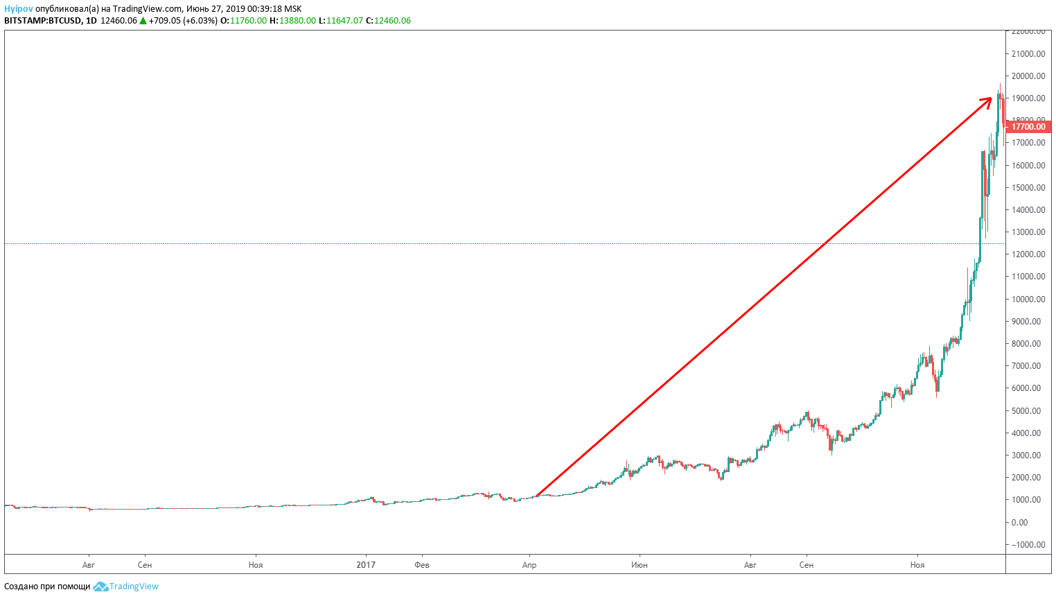 В итоге, пожар удалось погасить избыточной ликвидностью и Bitcoin разогнался практически до 20 00 USD. Этот уровень стал непреодолимым и с точки зрения психологии перешагнуть его было невозможно даже с помощь печатного станка.