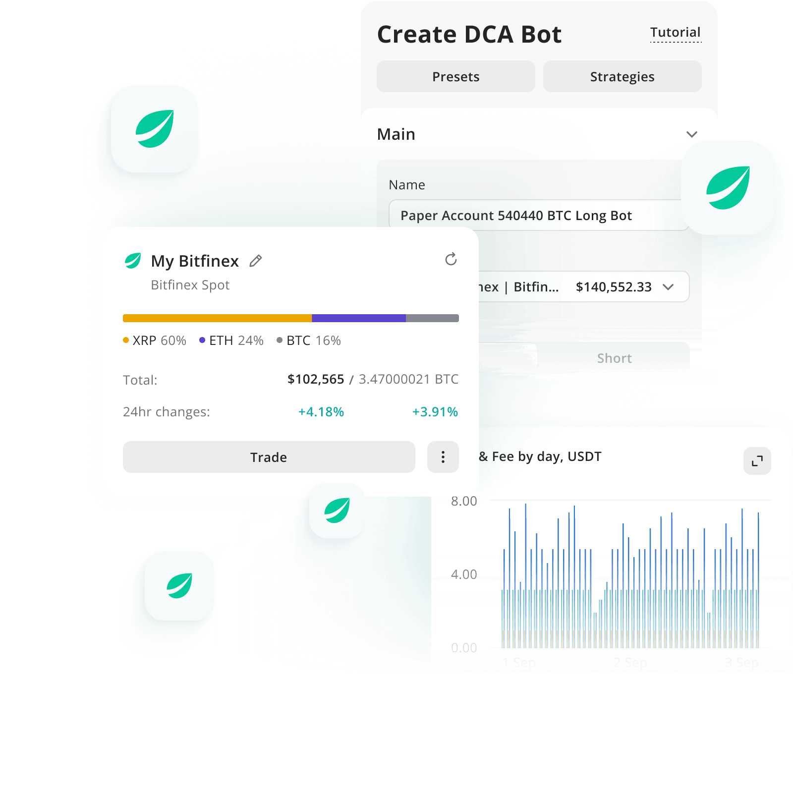 3Commas helps you automate trading on Bitfinex with bots, Smart Trades, and backtesting. Strategies run 24/7, while a clear dashboard keeps results and adjustments simple.