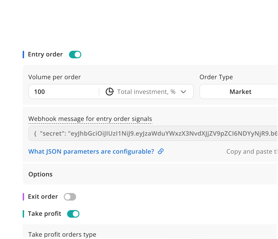 TradingView supports broker connections for some asset classes. For automated crypto trading with risk management, connect your alerts to 3Commas — we’ll place the orders on your linked exchange through API.