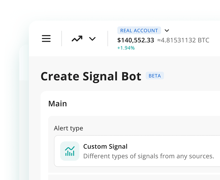 Turn any alert into a ready-to-trade strategy — no coding needed. Just set take-profits, stop-losses, trailing, cooldowns, or schedules in a simple visual builder. 3Commas will handle the execution exactly as you define.